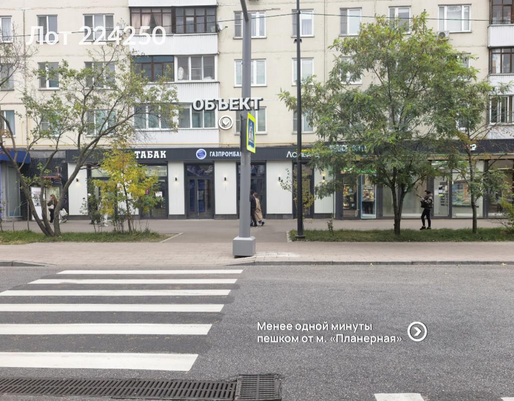 Лот № 224250 Предлагаются в аренду коммерческие помещения, расположенные по адресу: г. Москва, Северо-Западный административный округ, ул. Планерная. Объект доступен для аренды и продажи в непосредственной близости от станции метро «Планерная», до которой можно дойти менее чем за одну минуту пешком.Здание характеризуется удобной пешеходной и транспортной доступностью, что делает его привлекательным для бизнеса. Кроме того, объект обладает высоким рекламным потенциалом, включая возможность размещения наружной рекламы на фасаде.